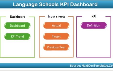 The dashboard draws its power from an Excel file where data is input across three tabs—Input Actual, Input Target, and KPI Definition—ensuring all your data is up-to-date and accurately reflected in your analytics.