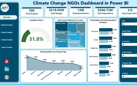 Climate Change NGOs Dashboard in Power BI is a professionally designed, ready-to-use analytics solution that helps environmental organizations visualize budgets,