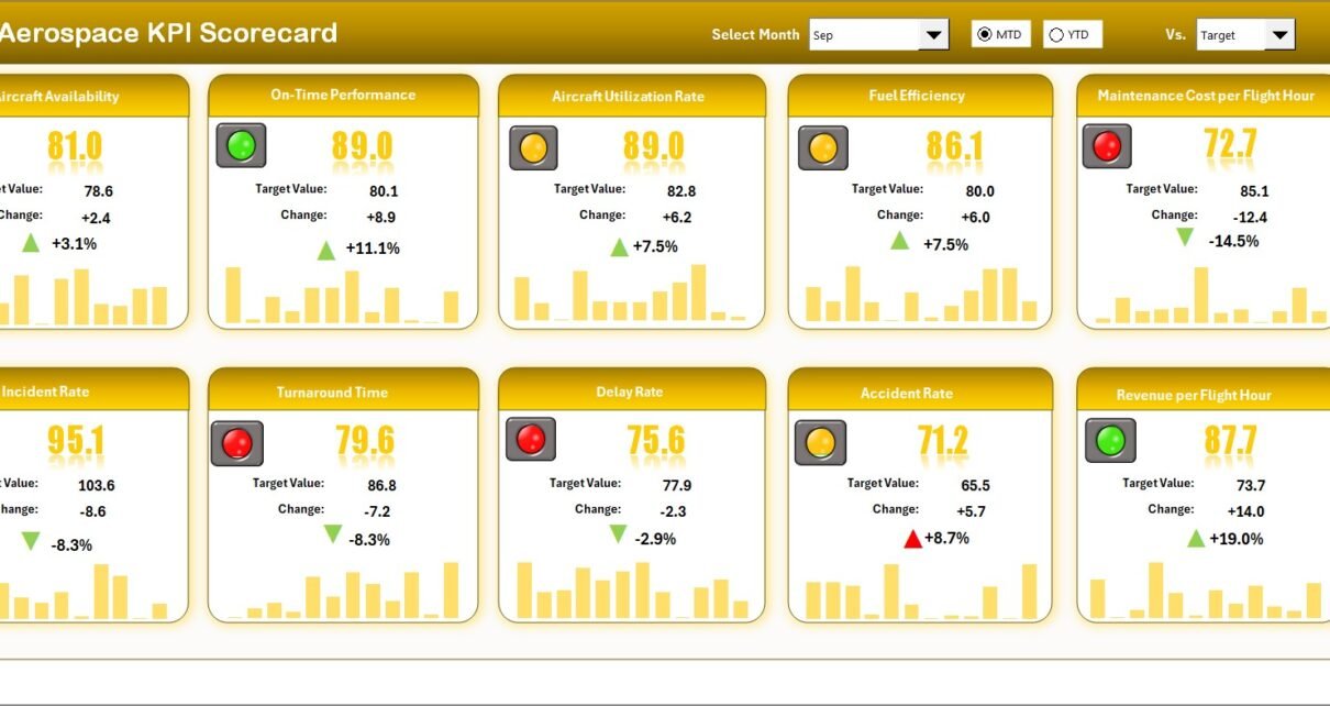 Data is only valuable when it drives action. The Aerospace KPI Scorecard turns raw data into actionable insights by: