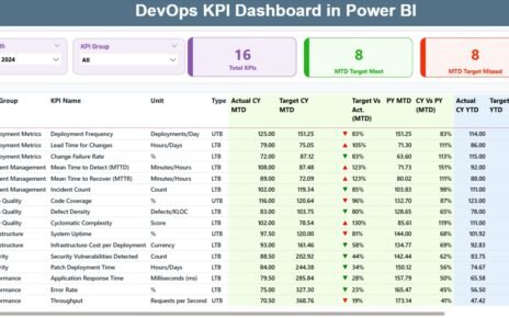 Below the slicers and cards, you get a detailed KPI table. This is the most important part of the dashboard because you track complete MTD and YTD performance with simple visuals.