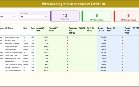 - Detailed KPI Table: Provides granular data on each KPI, including: