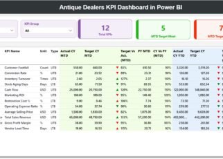 This ready-to-use Excel dashboard helps antique dealers, vintage store owners, estate sale professionals, and collectible traders monitor key performance indicators (KPIs) in one structured system. Moreover, it provides monthly and yearly comparisons. Consequently, you gain better visibility, improved control, and stronger business planning.