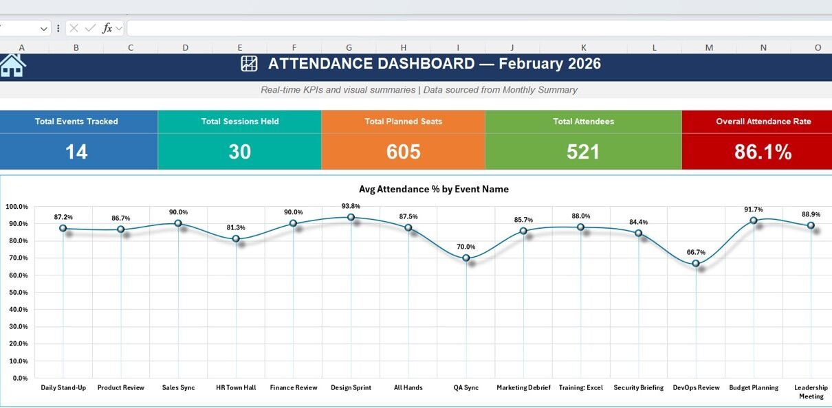 An Attendance Tracking System in Excel is a structured workbook designed to record daily attendance for meetings and events while automatically calculating participation metrics.