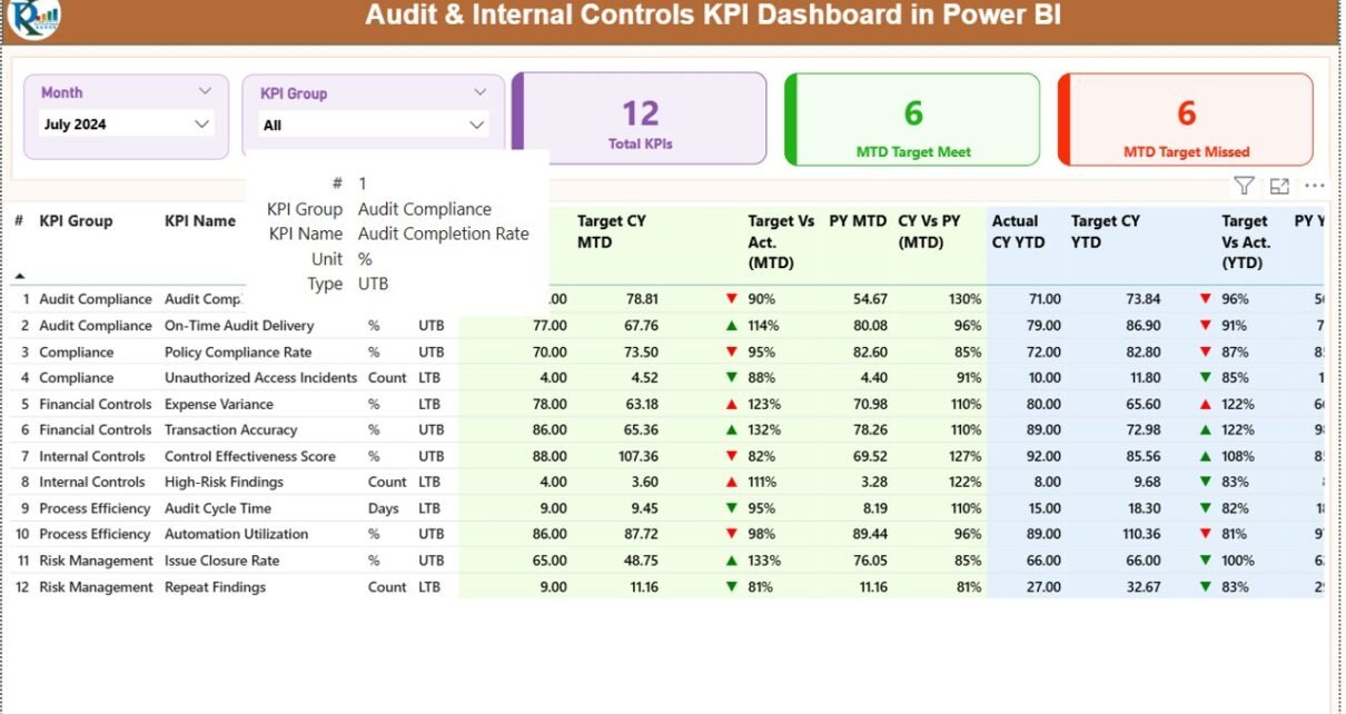 • Improved Audit Efficiency: Provides auditors with a centralized view of all KPIs.