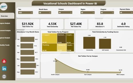 - The dashboard is structured into three distinct pages within the Power BI desktop application, each serving a specific analytical purpose: