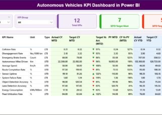 An Autonomous Vehicles KPI Dashboard in Power BI transforms raw performance data into meaningful insights. Instead of struggling with spreadsheets, teams gain a clear view of progress, risks, and opportunities.