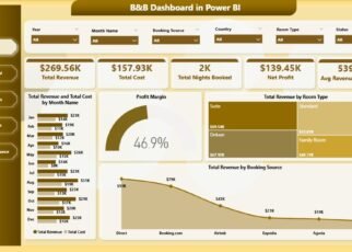 If you run a small B&B, inn, guesthouse, or vacation rental and you’ve been making pricing and channel decisions on instinct rather than data, the B&B Dashboard in Excel gives you 5 KPIs, 19 charts, and 5 slicer-driven pages of insights for the price of one night’s stay at most properties. It pays for itself the first time you reallocate a marketing dollar from a low-margin OTA to a higher-margin channel.