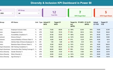 - Filtering Options: A slicer enables selection based on KPI names, allowing for focused analysis.