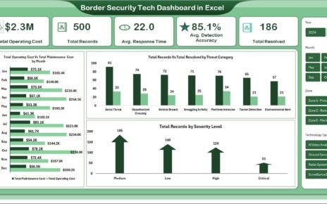 Border Security Tech Dashboard in Excel is a professionally designed, interactive analytics template built for border security agencies, homeland defense