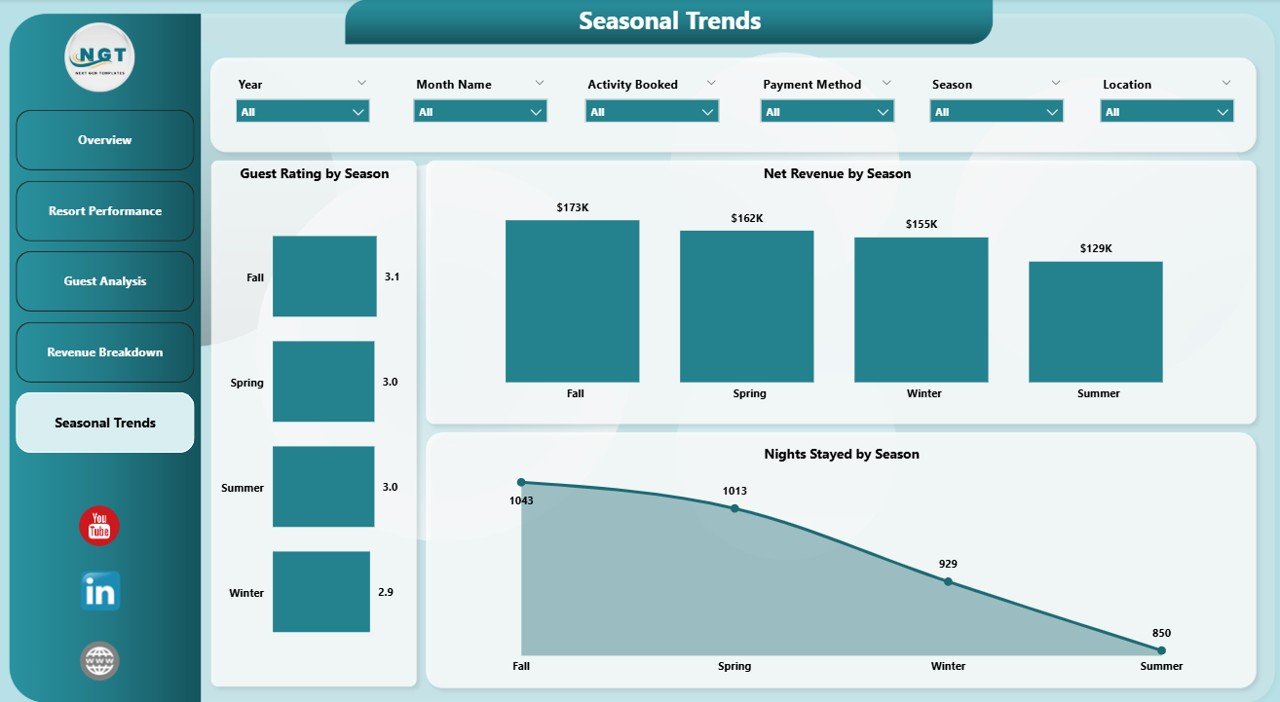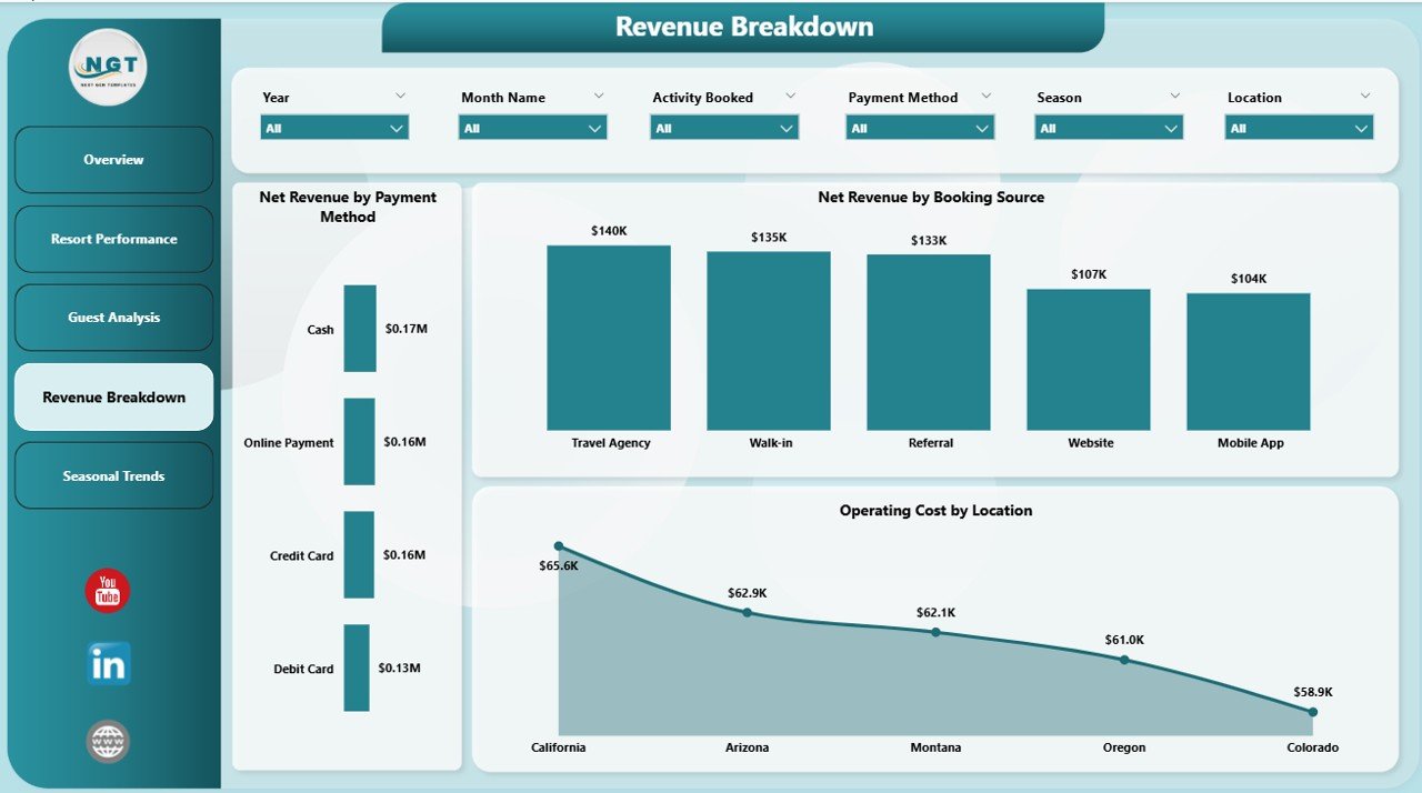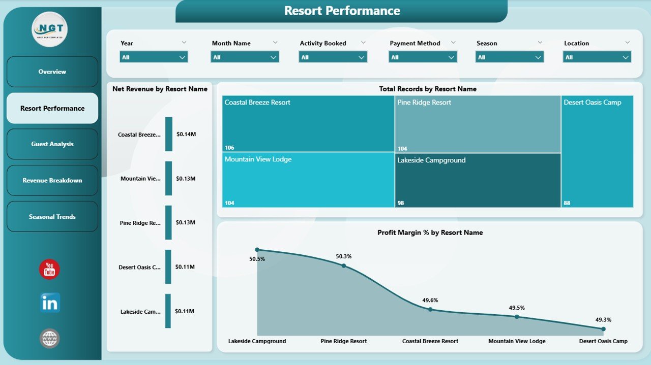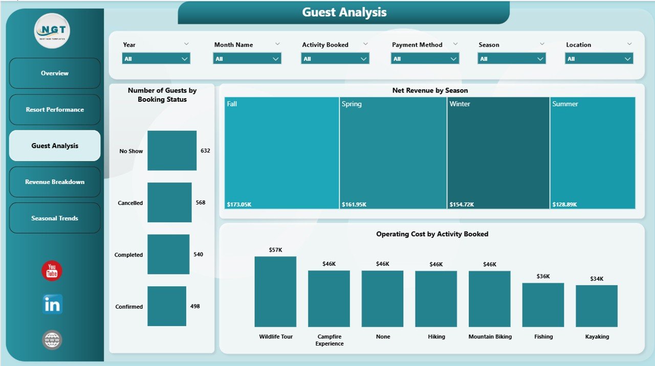 Net Revenue by Accommodation Type: This chart breaks down net revenue by lodging options, helping you identify your best-performing accommodation types.