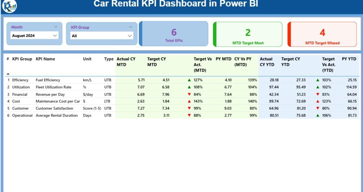 This table allows managers to instantly see which KPIs are on track and which need attention.