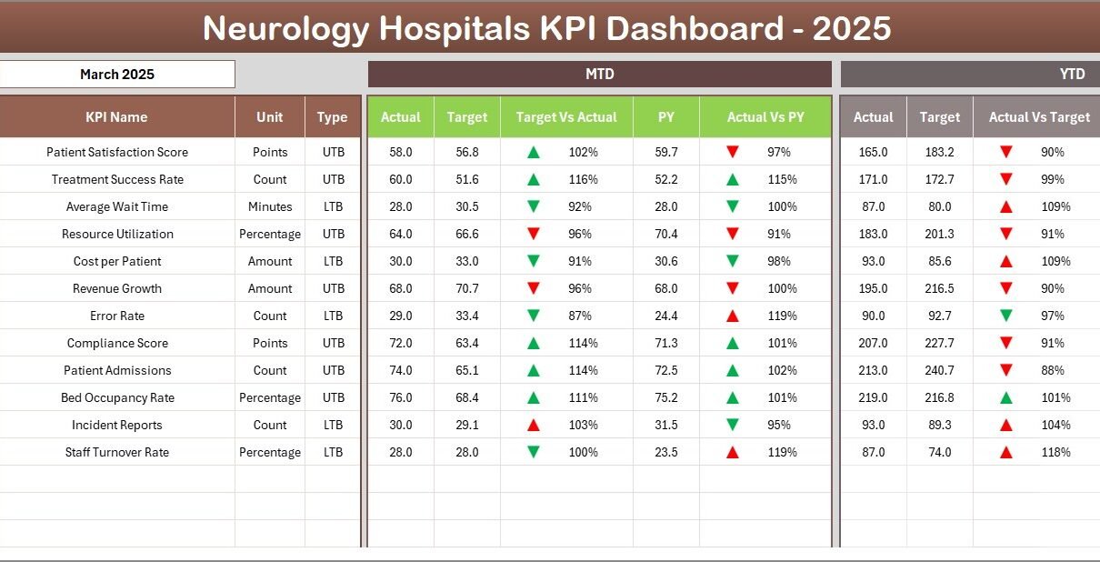 Introduction The Neurology Hospitals KPI Dashboard is an essential tool designed to help healthcare professionals monitor and manage key performance indicators effectively. This ready-to-use template simplifies the tracking of vital