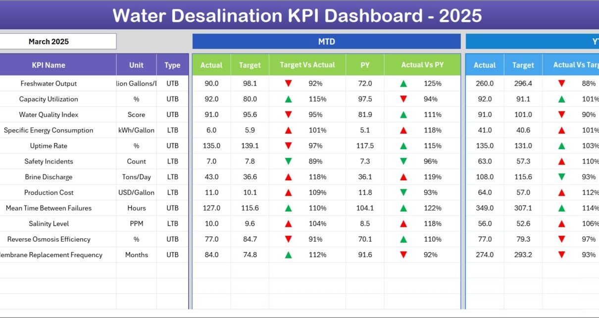 Water Desalination KPI Dashboard in Excel