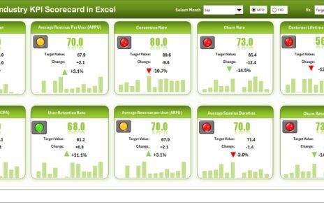 This dashboard includes seven important worksheets, each designed for a specific role. You get full control over monthly data, targets, KPI definitions, previous year numbers, and trend analysis.