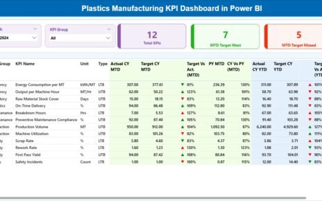 This format delivers a 360-degree view of KPI performance—instantly identifying what’s on track and what needs attention.