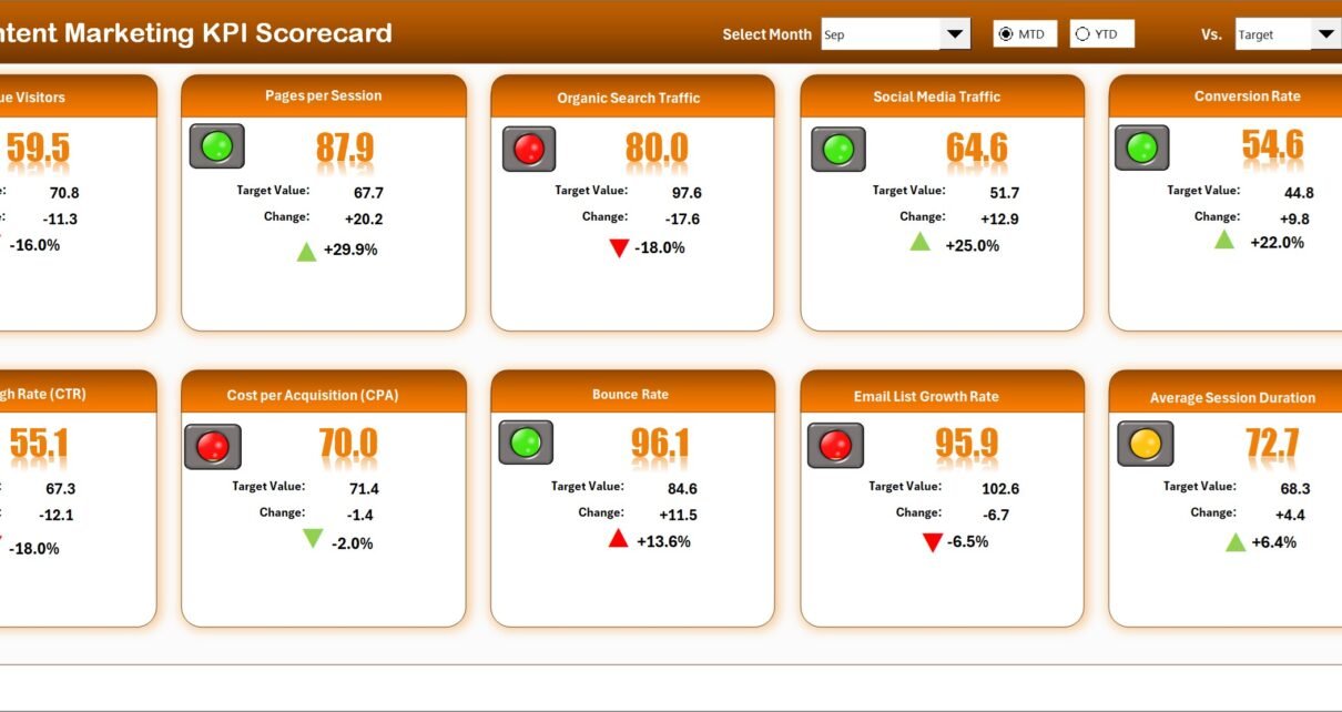 Content marketing is a critical element in today’s digital strategy. Tracking performance through relevant Key Performance Indicators (KPIs) ensures campaigns achieve desired outcomes. In this article, we’ve created a Content Marketing KPI Scorecard—a ready-to-use template designed to streamline how you monitor and evaluate your content marketing efforts effectively.