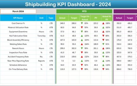 Shipbuilding KPI Dashboard in Excel