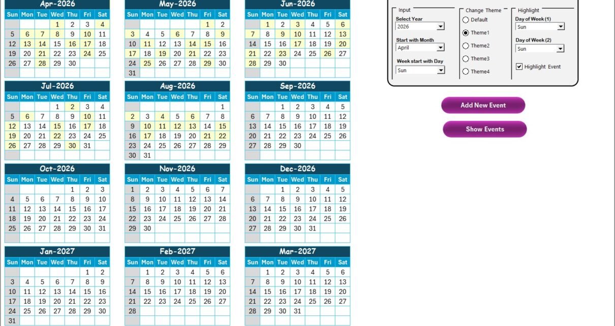 Moreover, Excel keeps everything familiar, flexible, and easy to maintain. You can update events, filter by date ranges, apply themes, and generate compliance views without complex tools.