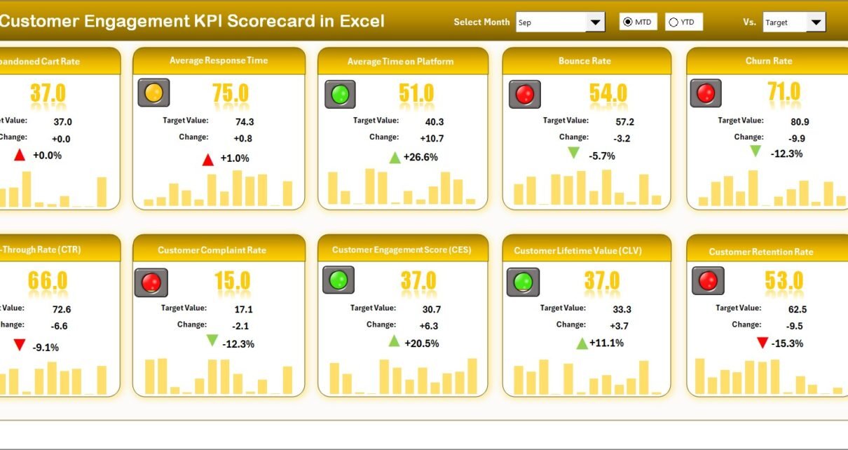 ✅ Dropdown Menus: Choose the reporting period — whether it’s Month-to-Date (MTD) or Year-to-Date (YTD) — for flexible analysis.