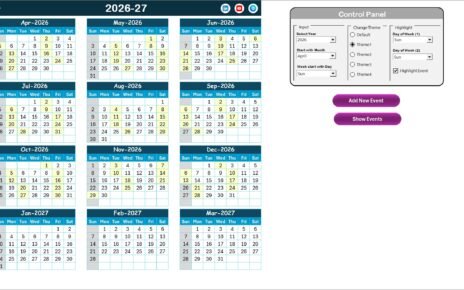 - Starting Month & Weekday: Users can set the starting month and the first day of the week.