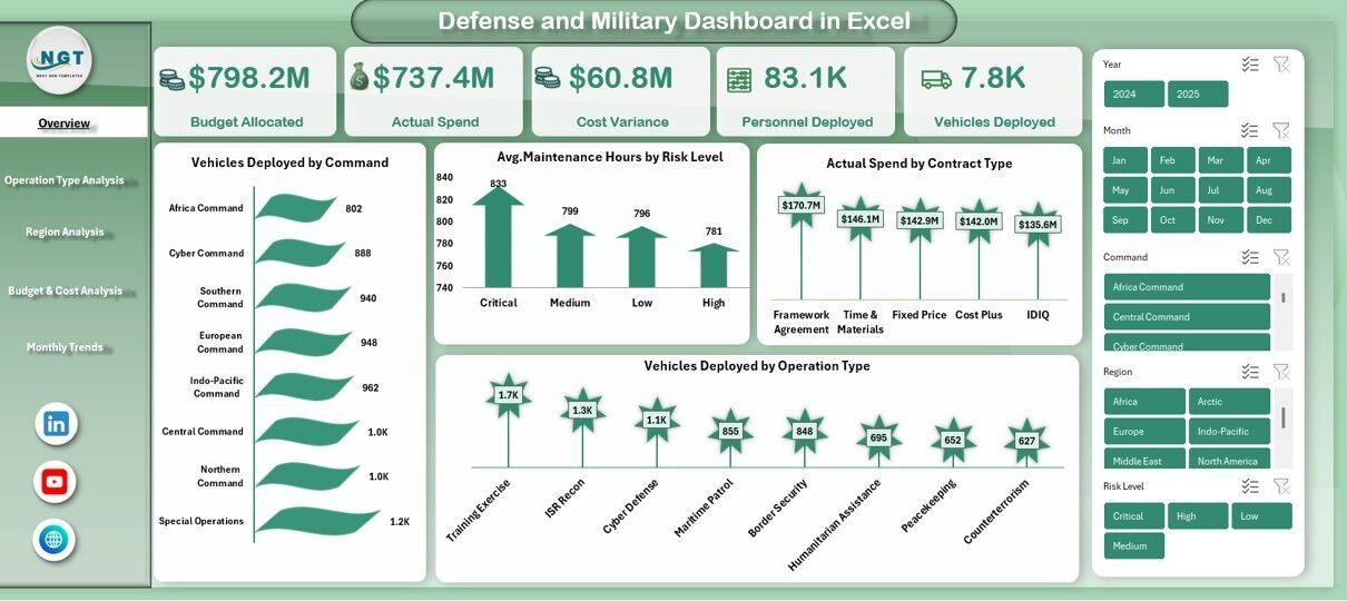 That is exactly why a Defense and Military Dashboard in Excel becomes a powerful and practical solution.