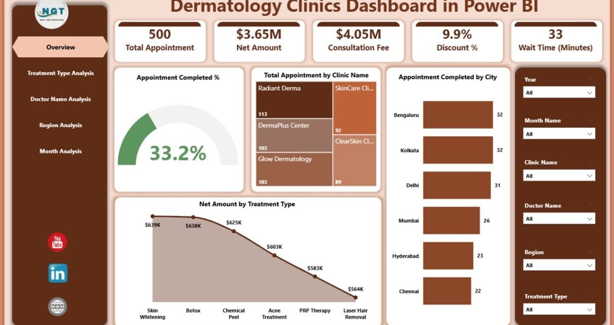In today’s fast-moving healthcare environment, dermatology clinics must rely on data to stay competitive. However, many clinics still depend on scattered spreadsheets and manual reports. As a result, decision-makers struggle to track appointments, revenue, doctor performance, and treatment trends.