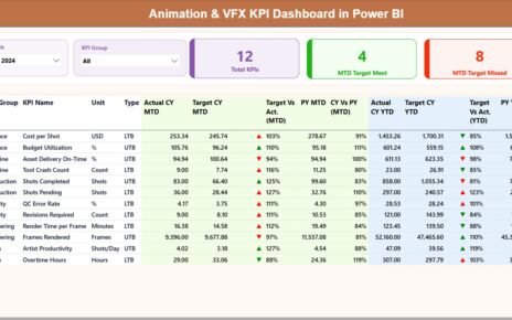 - Allows users to select specific KPIs and analyze trends using interactive drop-downs.