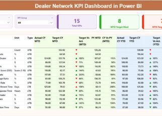 Effortlessly navigate through real-time updates of Month-to-Date (MTD) and Year-to-Date (YTD) actuals, targets, and previous year data. The dashboard displays these with advanced conditional formatting, highlighting variances and trends at a glance.