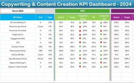 The Film Production KPI Dashboard in Excel is a powerful, ready-to-use tool designed to simplify the process of tracking and analyzing key performance indicators (KPIs) essential for successful film production. This dynamic dashboard provides a centralized platform for monitoring monthly and yearly metrics, helping production teams make data-driven decisions effortlessly.