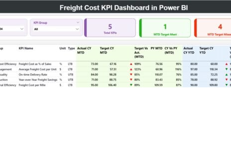 - Centralize all critical KPIs in one view, with selectable months for dynamic data updates. Visualize month-to-date and year-to-date comparisons of actuals, targets, and previous year figures, enhanced by conditional formatting for immediate performance insight.