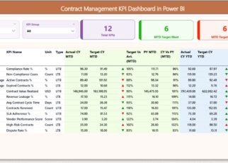 - KPI Definition Sheet Tab: This sheet provides detailed definitions for each KPI, including its name, group, unit, formula, and detailed description, making it easier for team members to understand and use the dashboard effectively.