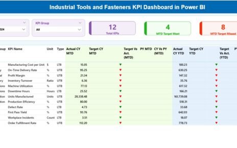 - Clearly defines each KPI, including its category, unit, formula, and importance.