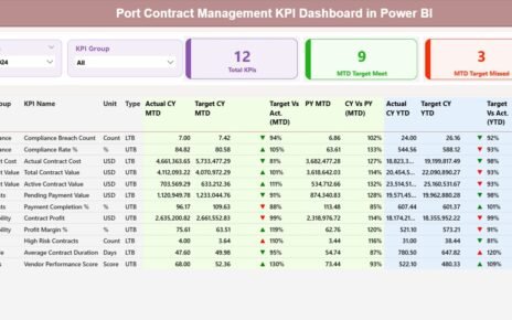 The Shared Services KPI Dashboard in Excel is a professional, ready-to-use template designed to streamline the tracking and analysis of Key Performance Indicators (KPIs) for shared services. This dynamic and interactive dashboard allows you to monitor performance trends, compare metrics, and make data-driven decisions with ease. Whether you’re managing monthly targets or year-to-date achievements, this tool simplifies the process and enhances efficiency.