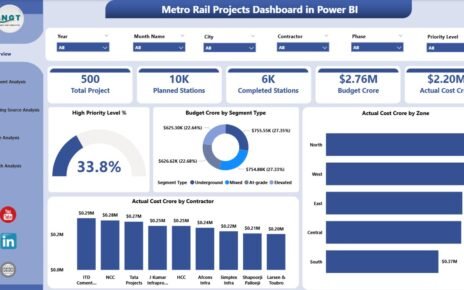 This is the main sheet that displays all KPIs in a visual format. Users can select the month from a drop-down list (Range D3), and the entire dashboard will update with the selected month’s data. It shows: