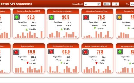 Unlock the potential of your sustainable tourism initiatives with our “Sustainable Tourism KPI Dashboard in Excel.” This ready-to-use template is designed to help you efficiently monitor and enhance your sustainability performance, ensuring you meet both current and future ecological, community, and cultural targets Sustainable Tourism KPI Dashboard.