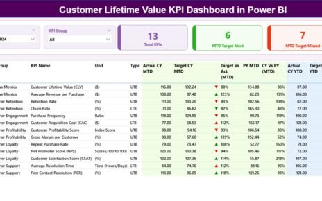 Enter target values for each KPI, both for MTD and YTD, to track performance against goals and compare progress.