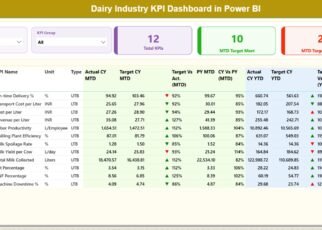 - MTD (Month-to-Date) actual, target, and previous year data.