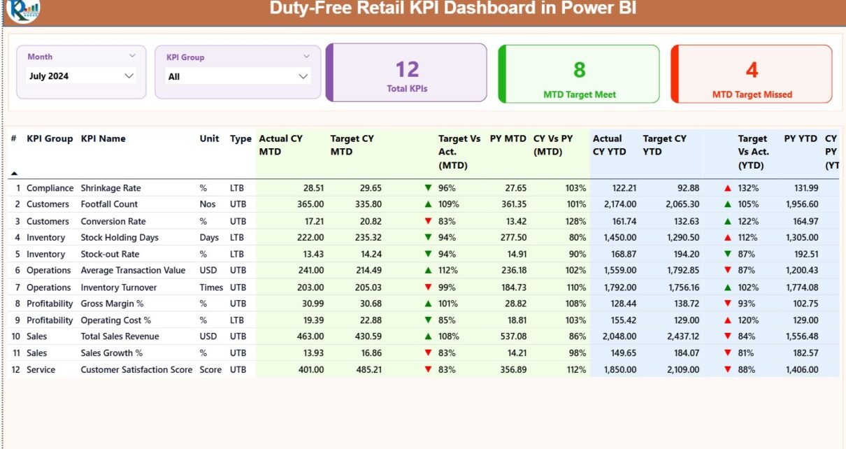 How Does a Duty-Free Retail KPI Dashboard in Power BI Work?