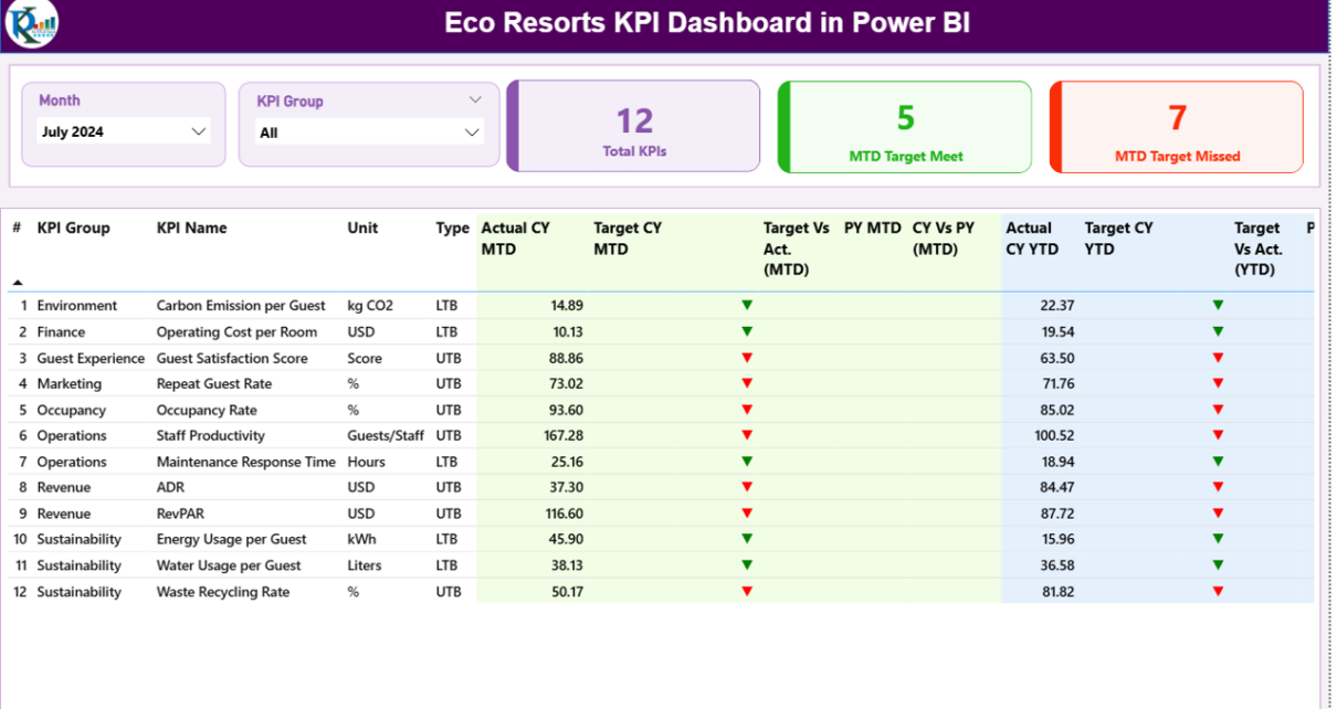 How Does an Eco Resorts KPI Dashboard in Power BI Work?