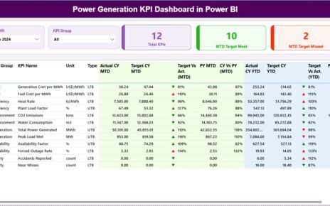 🟢🔴 Visual Indicators: Conditional formatting highlights KPIs that meet or miss their goals using color-coded arrows or icons.