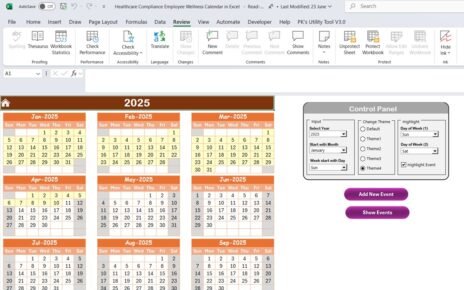 The Education Compliance AI Implementation Calendar in Excel is an advanced, interactive tool that helps educational institutions track compliance events. With its seamless design, it allows users to monitor and manage key dates, events, and activities across various compliance areas. The calendar incorporates AI to assist in tracking events automatically, providing an efficient solution for institutions of all sizes.
