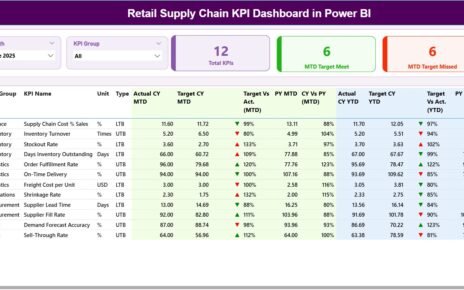 - The sheet presents vital information such as KPI Group, Unit of KPI, and Type (whether Lower is Better or Upper is Better).