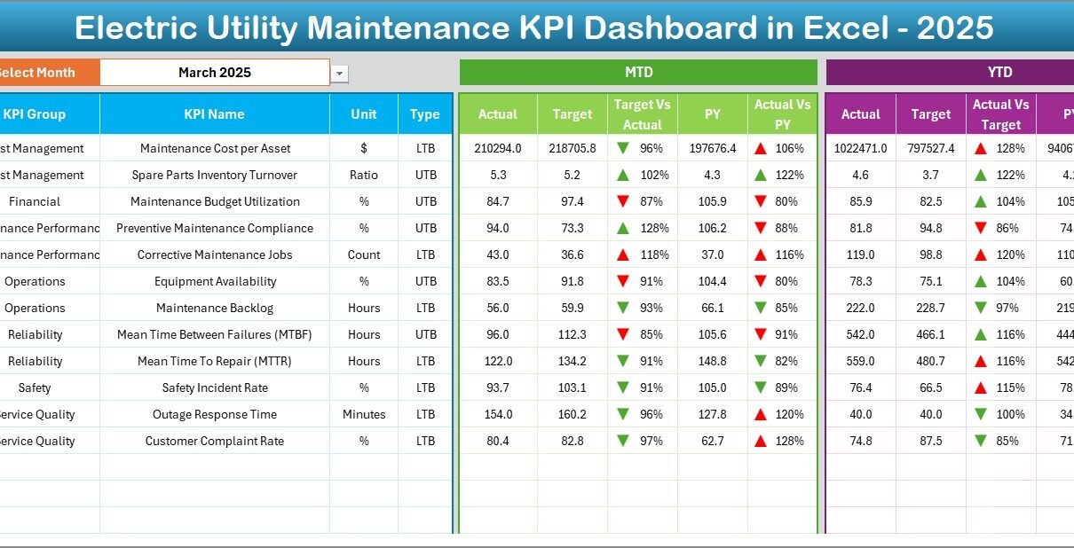 What Is an Electric Utility Maintenance KPI Dashboard in Excel?