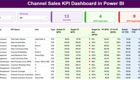 MTD Actual, Target, and Previous Year Data: You’ll see the actual Month-to-Date (MTD) values, targets, and the previous year’s data for each KPI.