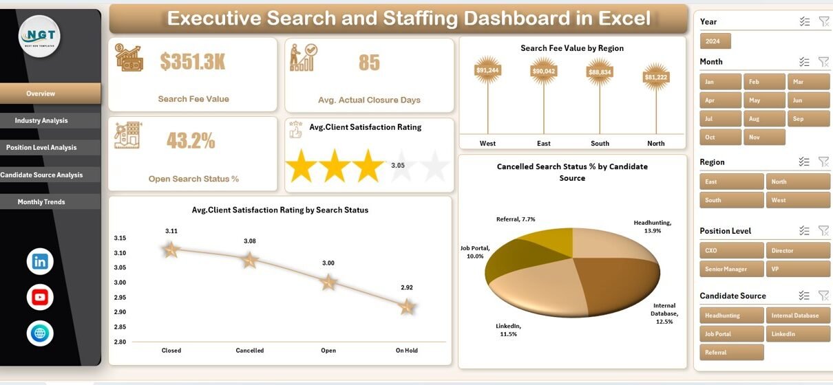 An Executive Search and Staffing Dashboard in Excel helps because it: