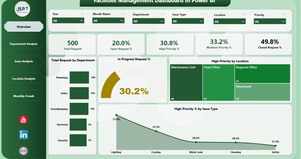 In today’s dynamic business environment, efficient facility management is more than just maintenance — it’s about ensuring safety, comfort, and productivity across every building and workspace. From tracking maintenance requests to analyzing operational costs, facility managers face increasing pressure to make data-driven decisions quickly. That’s where the Facilities Management Dashboard in Power BI comes in.