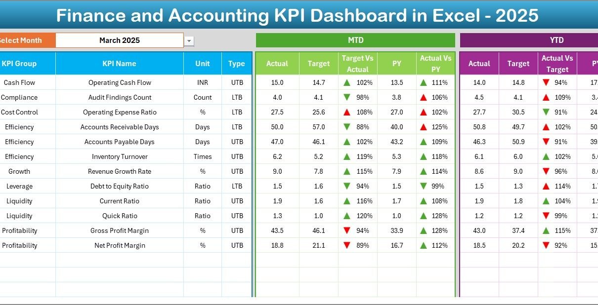 A Finance and Accounting KPI Dashboard in Excel helps because: