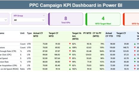 - MTD (Month-to-Date) Actual, Target, and Previous Year (PY)