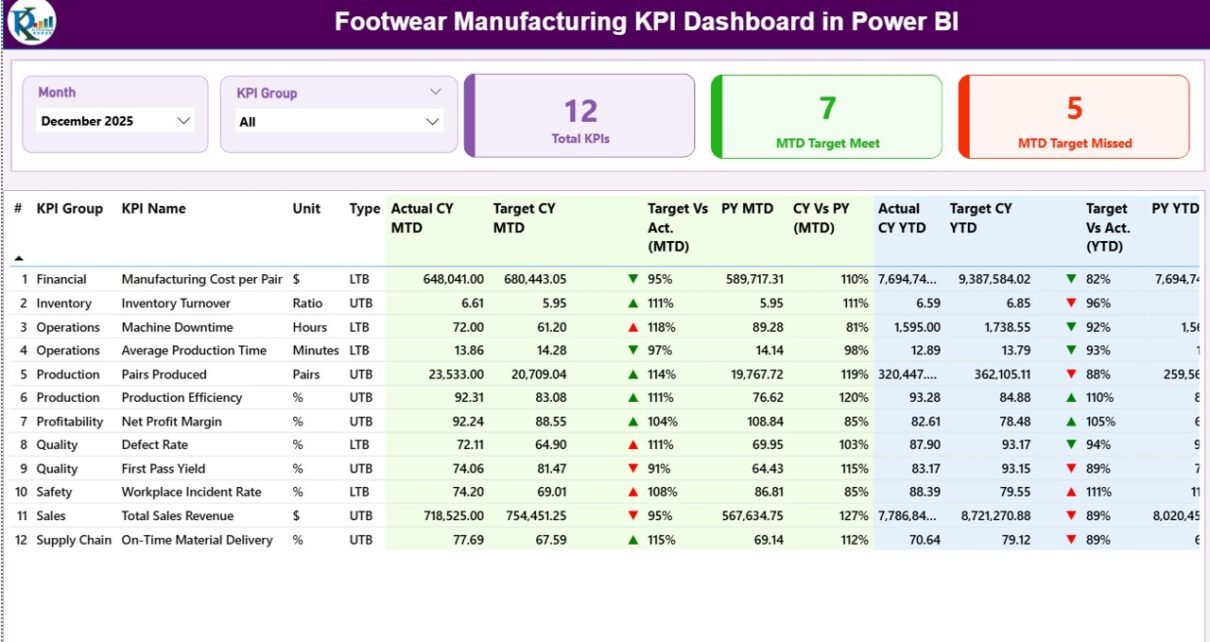 What Is a Footwear Manufacturing KPI Dashboard in Power BI?