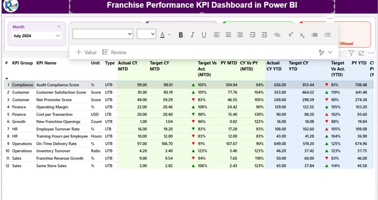 What Is a Franchise Performance KPI Dashboard in Power BI?
